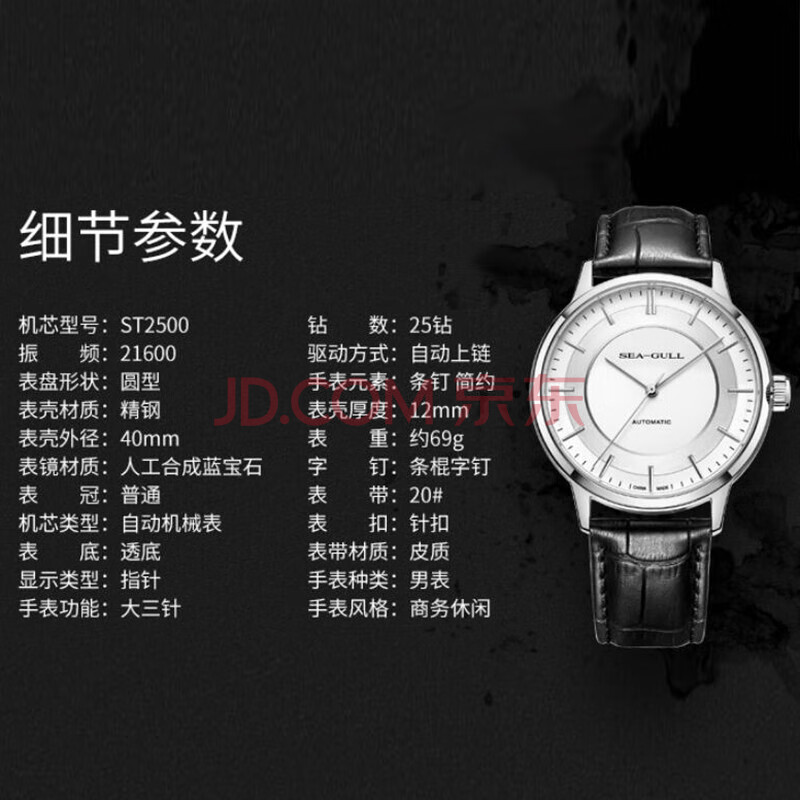 商品相册:海鸥(SEAGULL)手表男士自动机械表 简约男士手表生日礼物男表819.12.6061第