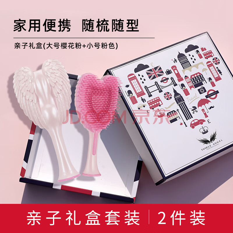商品相册:Tangle Angel梳子 英国天使王妃梳按摩梳亲子礼盒 节日礼物送女友(2只装)第