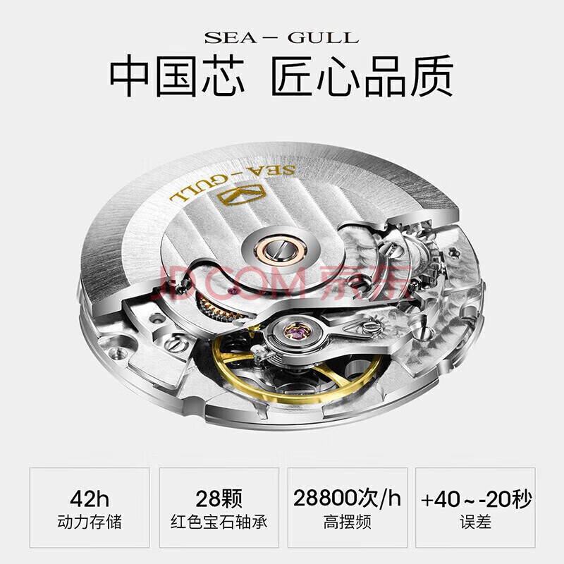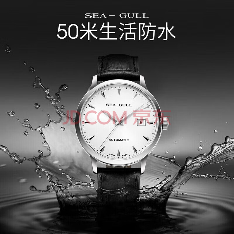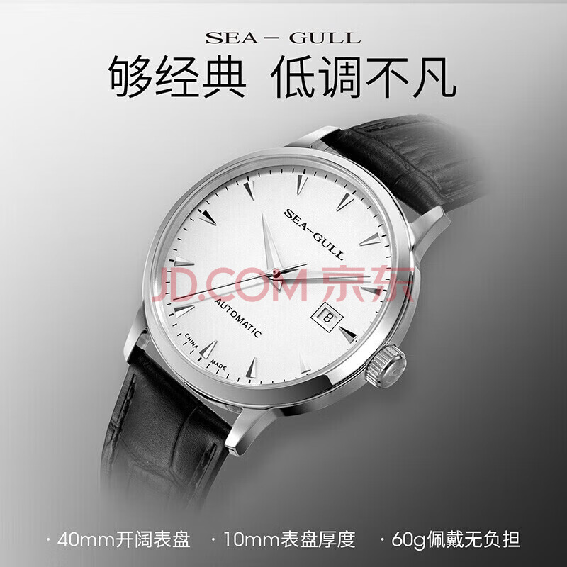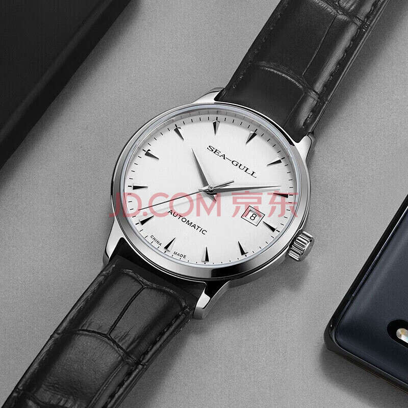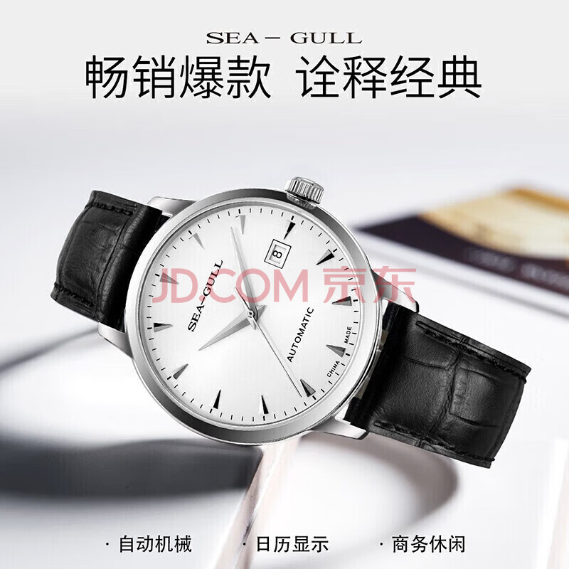 商品相册:海鸥(SEAGULL)手表男士自动机械表 日历皮带男士手表 生日礼物6613白盘条钉第