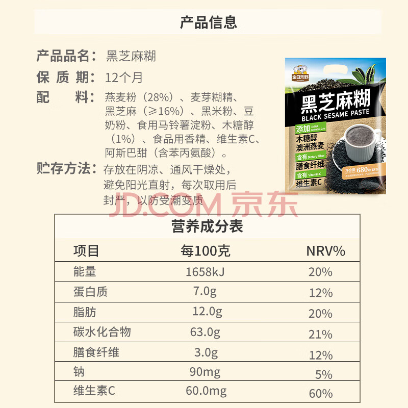 商品相册:金日禾野 黑芝麻糊680g 冲饮谷物营养早餐冲泡即食五谷杂粮代餐粉谷物粉第