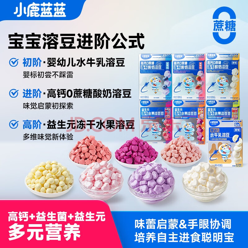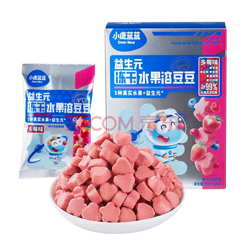 商品相册:小鹿蓝蓝新版益生元冻干水果溶豆豆多莓味 冻干宝宝零食溶豆儿童零食 18g 第