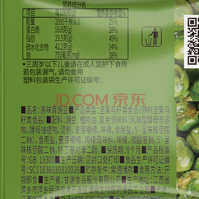 商品相册:甘源休闲零食青豌豆原味青豆坚果炒货特产小吃豌豆粒100g/袋第1张/共6