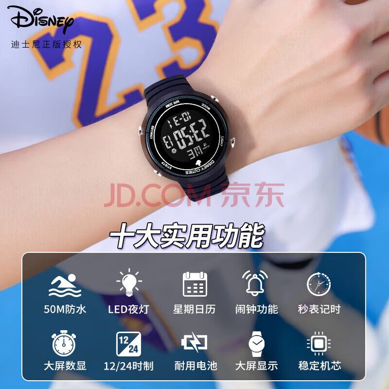 商品相册:迪士尼(Disney)学生手表简约时尚防水电子表青少年多功能数显运动手表开学礼物第