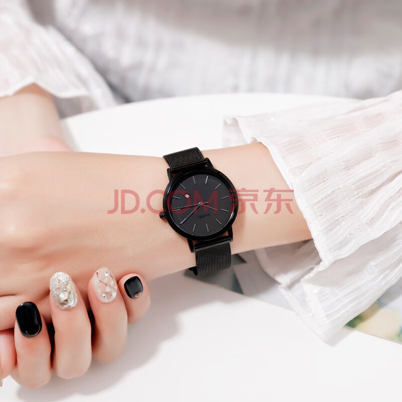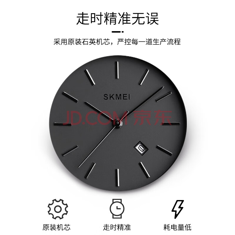 商品相册:时刻美(skmei)学生手表初高中生青少年儿童公务员考试专用男女石英表1530黑第