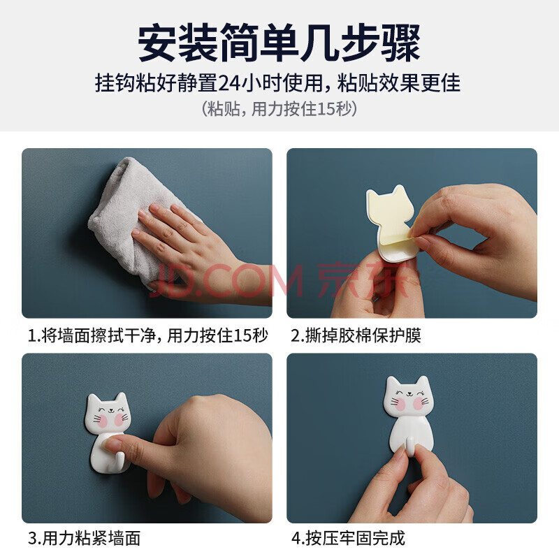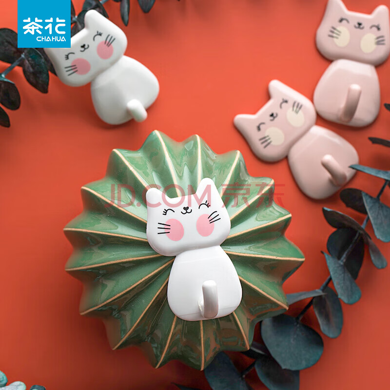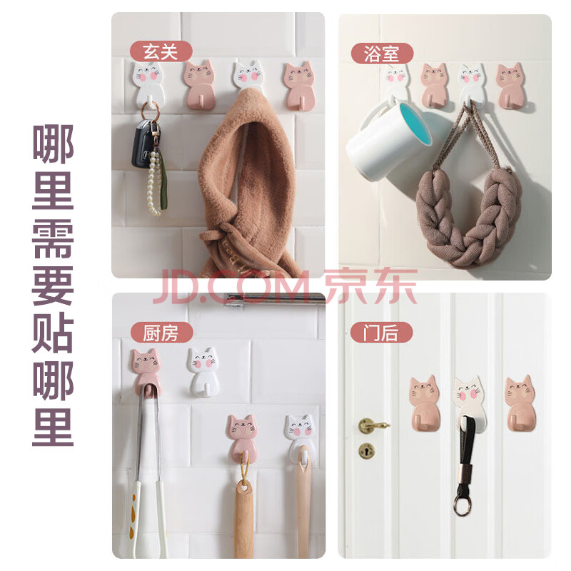 商品相册:茶花挂钩 浴室门后粘钩 衣服毛巾挂钩 挂衣架强力粘贴钩 10支装第