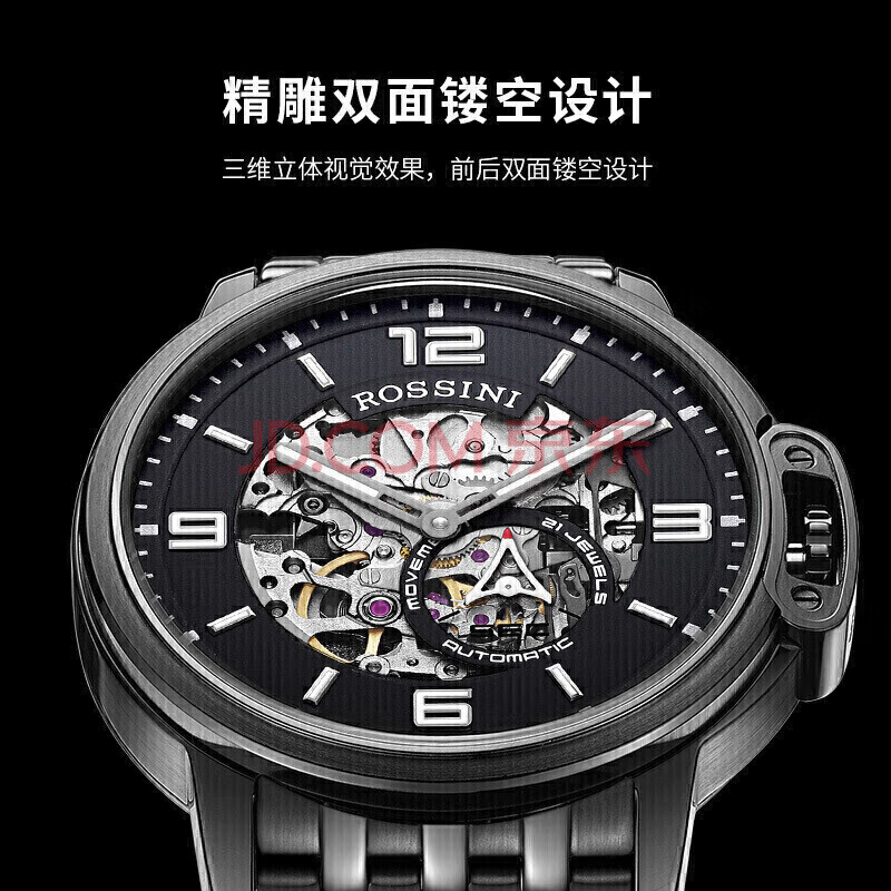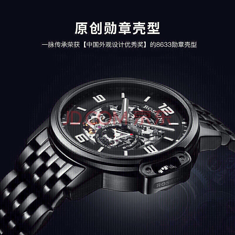 商品相册:罗西尼(ROSSINI)手表男款 机械手表生日礼物送男友国表商务镂空钢带黑盘517793第