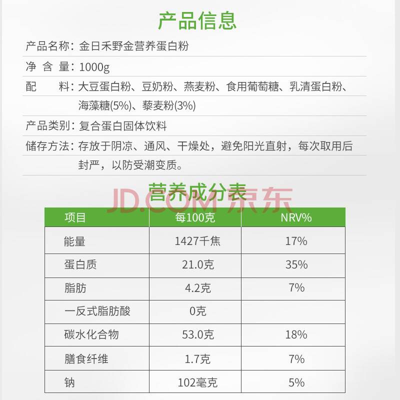 商品相册:金日禾野金营养蛋白粉1000g罐装 燕麦片冲饮谷物营养早餐过年送礼营养品第