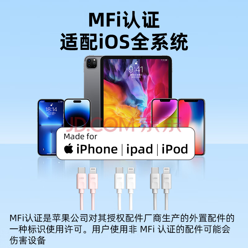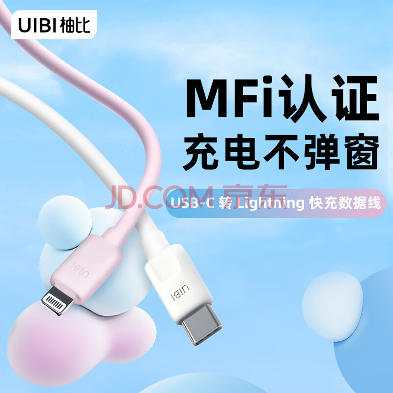 商品相册:UIBI柚比 MFi认证苹果数据线Type-C充电线PD30W/20W快充适用iPhone14/13/12ProMax/11手机平板莫兰粉第