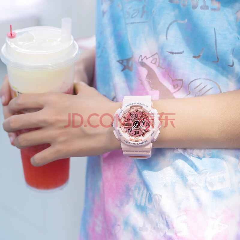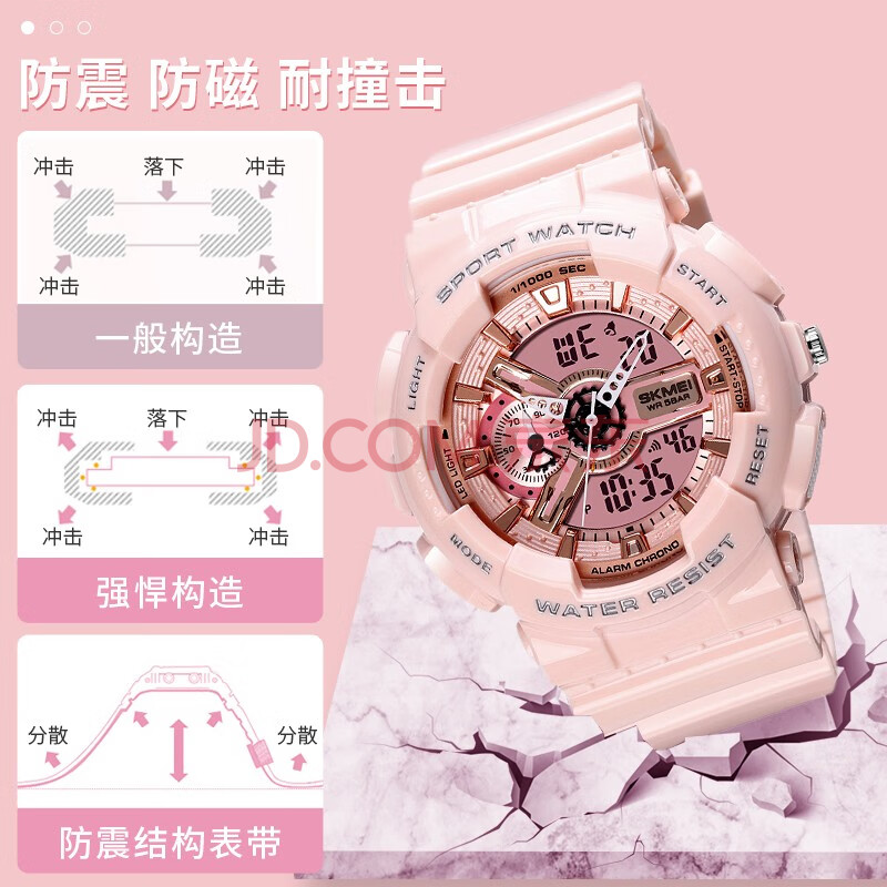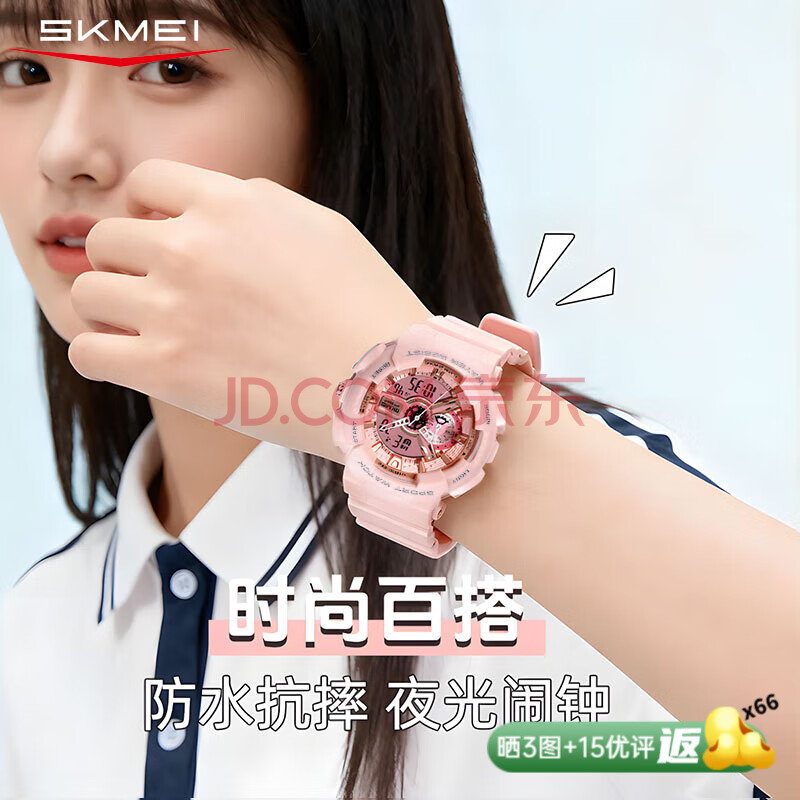 商品相册:时刻美(skmei)学生手表儿童初高中生运动电子表闹钟夜光防水女生日礼物1688粉色第