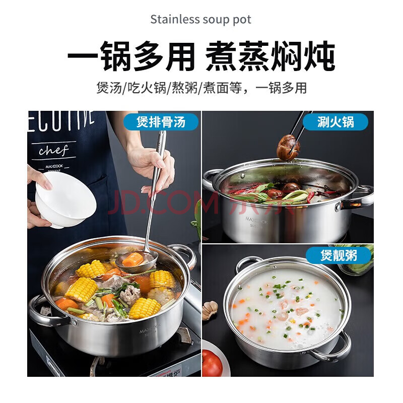 商品相册:美厨(maxcook)汤锅火锅 304不锈钢多用汤锅火锅26cm 燃气电磁炉通用 MCT8697第