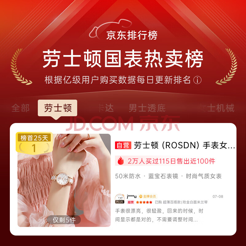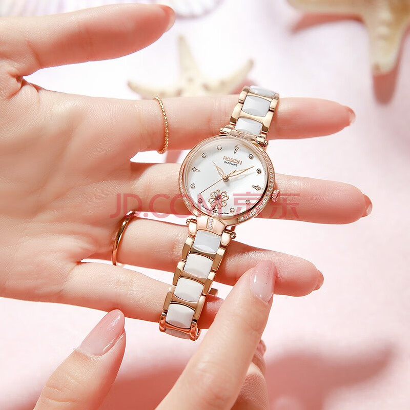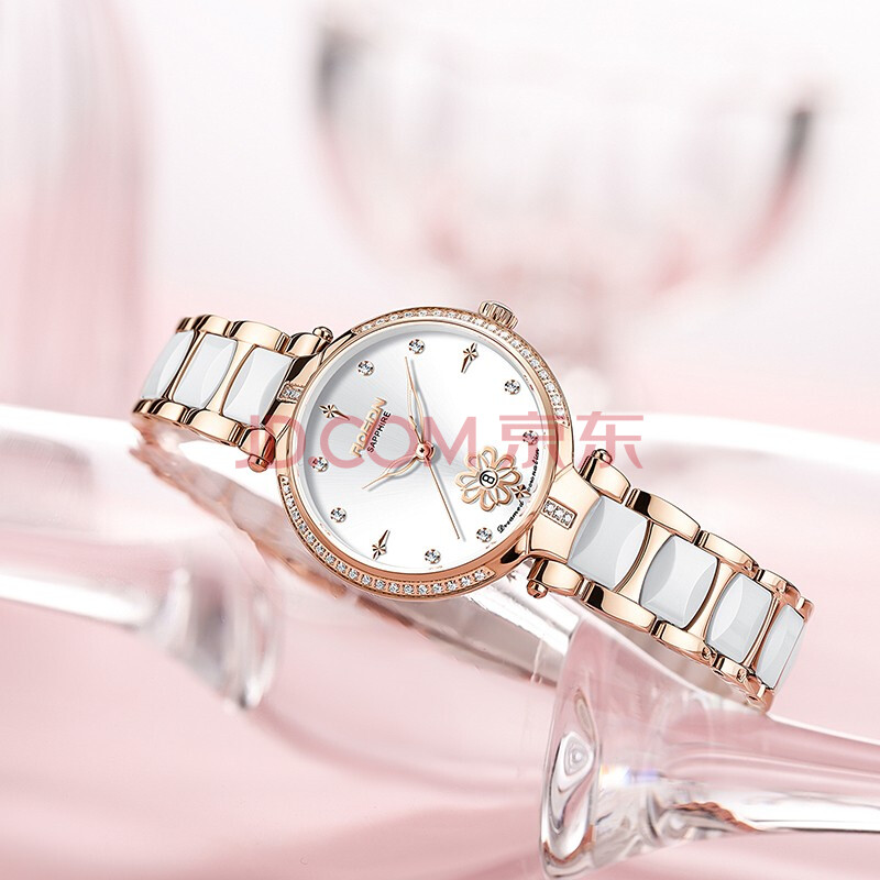 商品相册:劳士顿(ROSDN)手表女士 花语系列陶瓷带日历防水十大品牌生日礼物送女友第