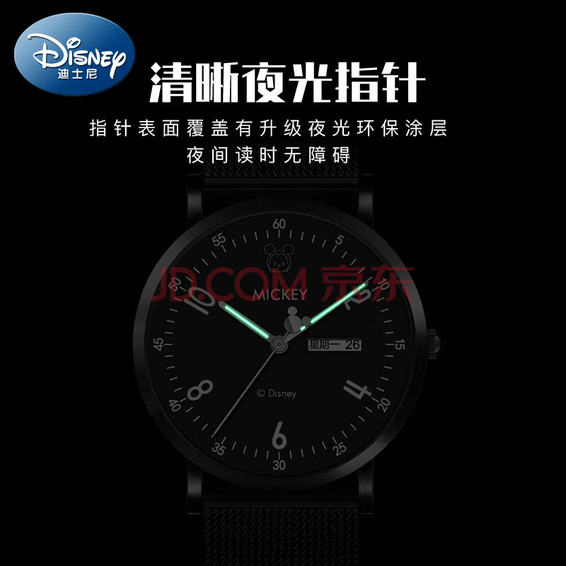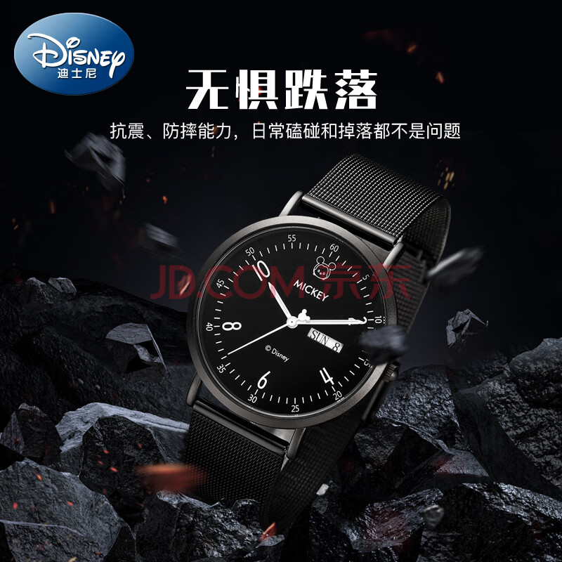 商品相册:迪士尼(Disney)学生手表男简约防水双日历石英表初高中生青少年考试手表礼物第