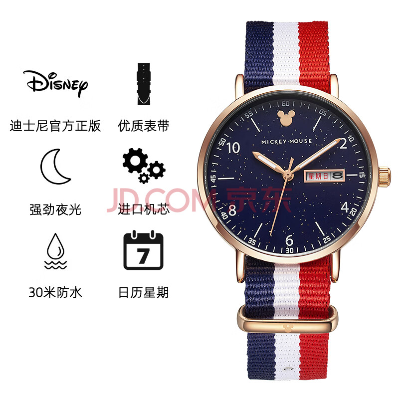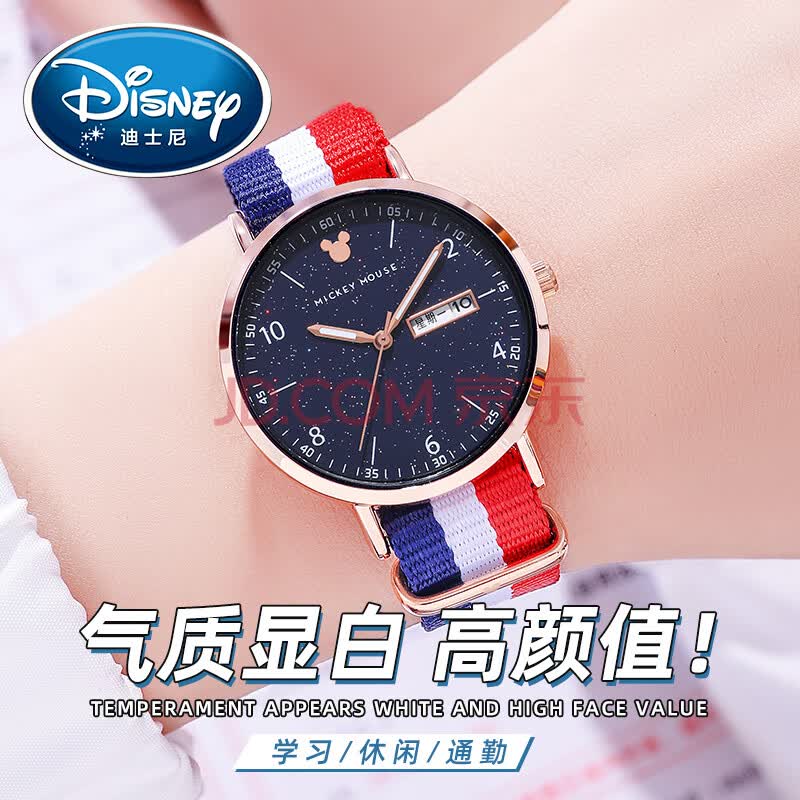 商品相册:迪士尼(Disney)手表女款学生初高中女生高中生中学生初中生少女指针日历防水腕表第