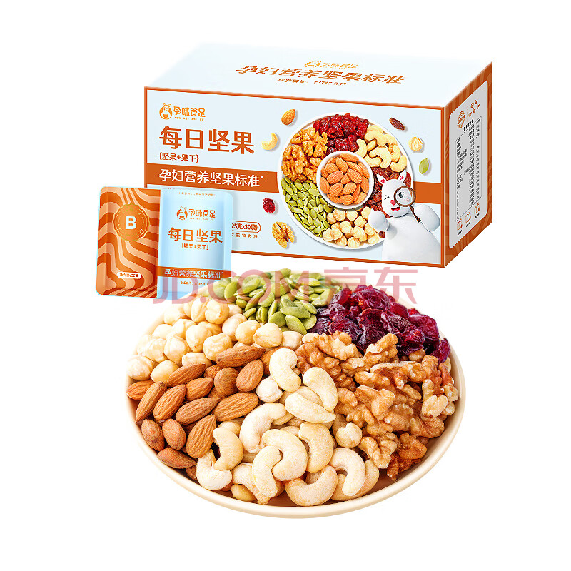 商品相册:孕味食足每日坚果B款750g/30袋孕妇可吃零食营养孕期休闲干果炒货礼盒送礼第