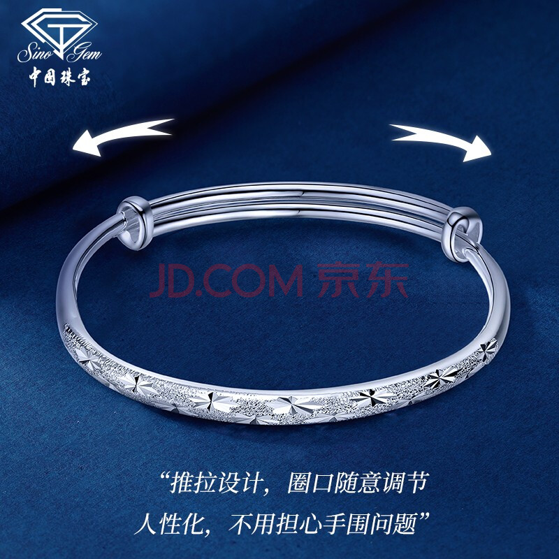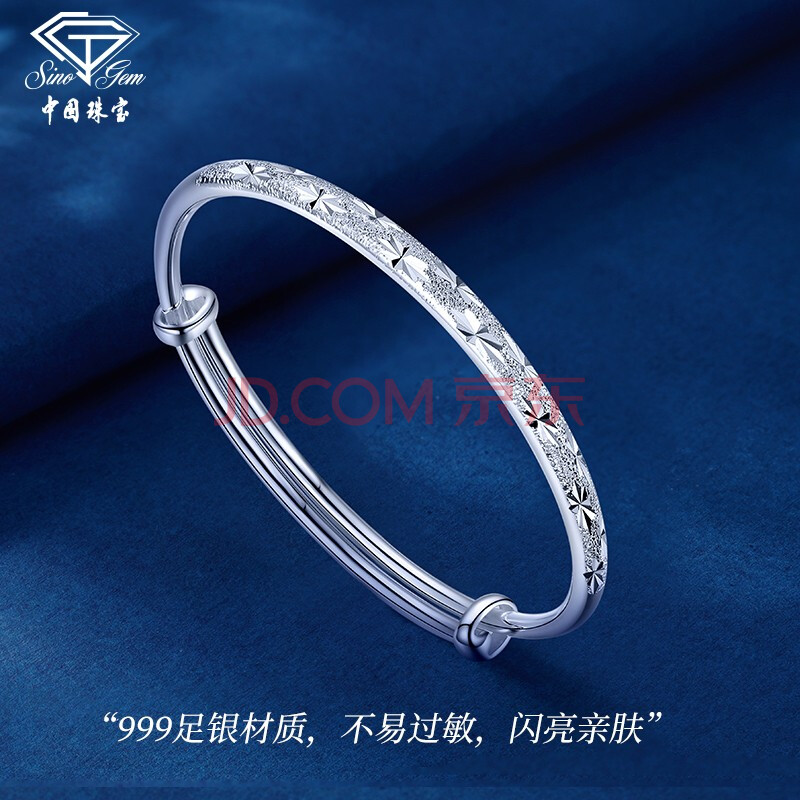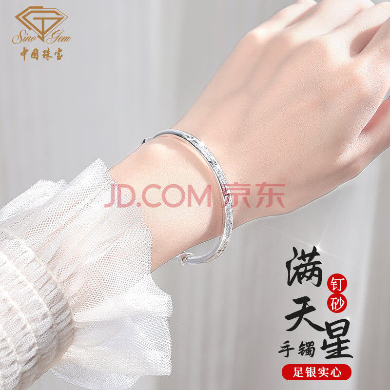 商品相册:中国珠宝生日礼物送女友满天星银手镯女足银999银首饰送女友老婆25g第