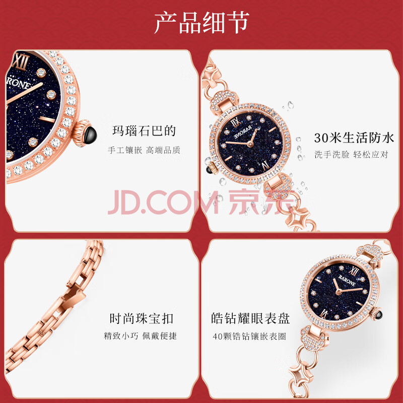 商品相册:雷诺(RARONE)万事如意女士手表星辰蓝手链表石英腕表本命年 送女友生日礼物第