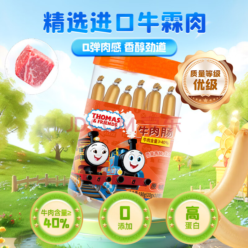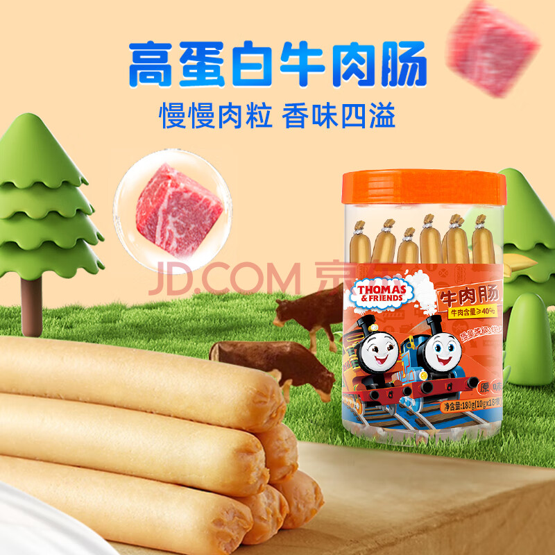 商品相册:小火车(THOMAS & FRIENDS)托马斯进口牛霖肉牛肉肠开袋即食儿童早餐宝宝零食火腿肠桶装180g第