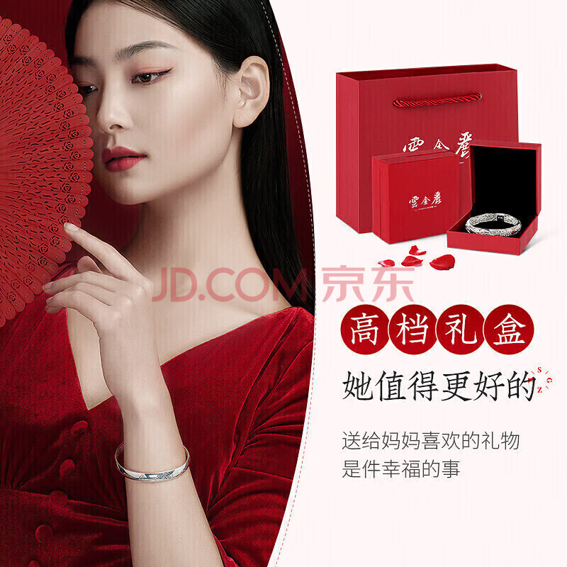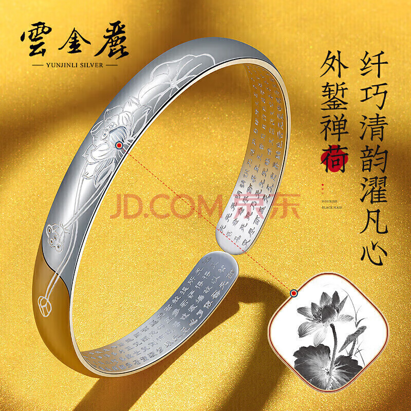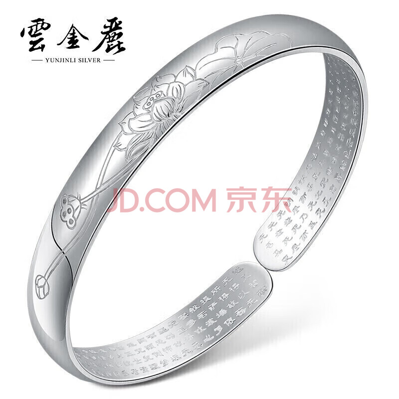商品相册:云金丽银手镯999足银民族风银饰荷花心经银镯子送长辈妈妈生日礼物实用第