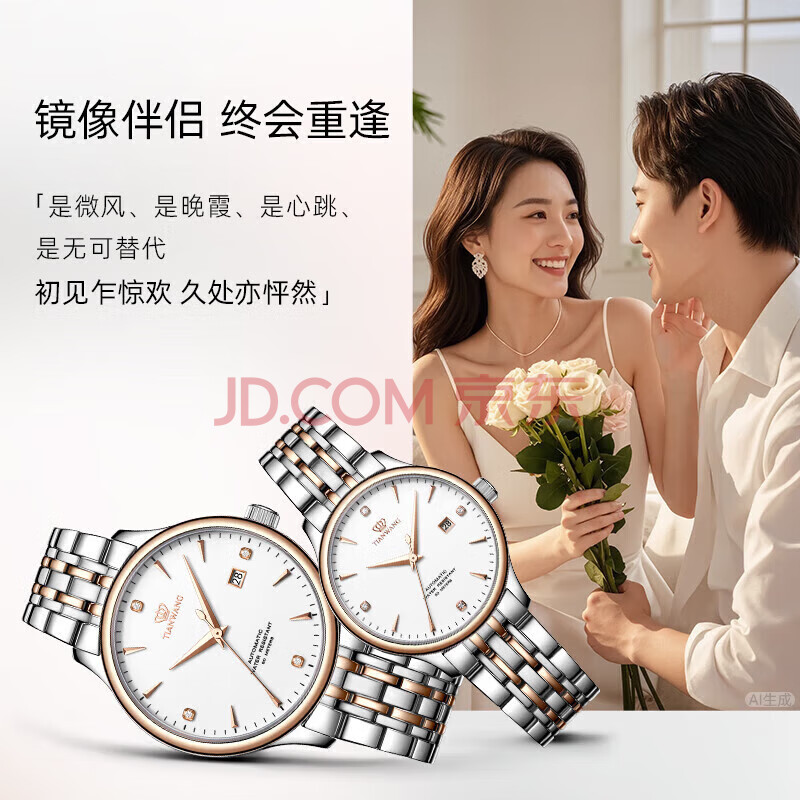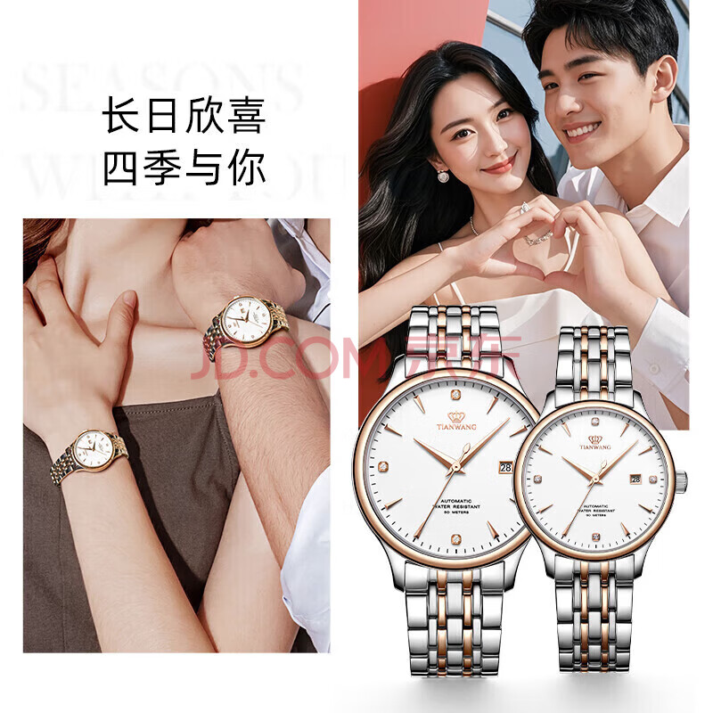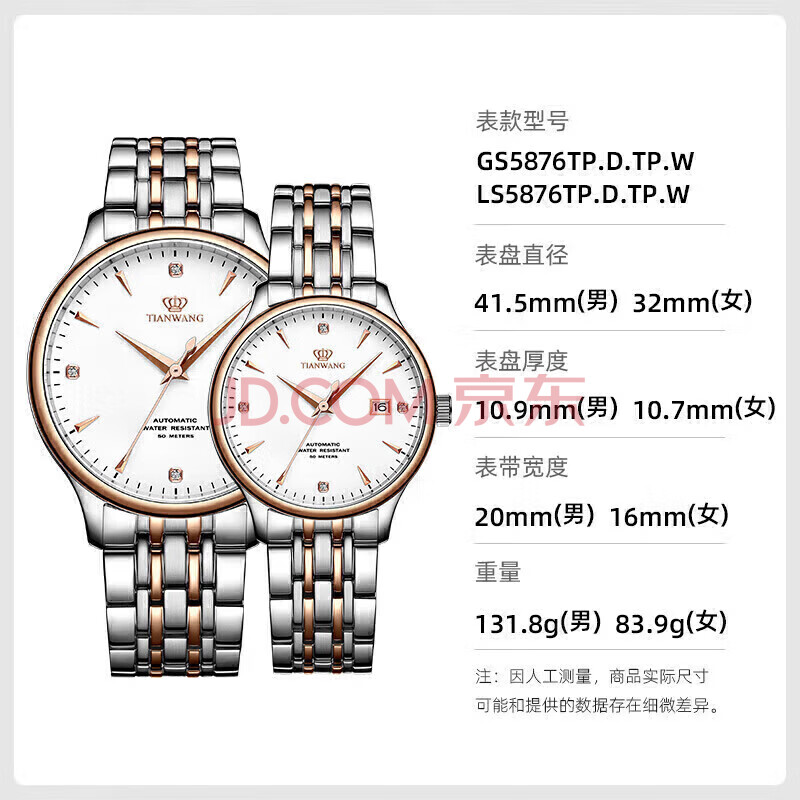 商品相册:天王(TIAN WANG)情侣手表一对钢带防水机械腕表生日礼物GS&LS5876TP.D.TP.W第