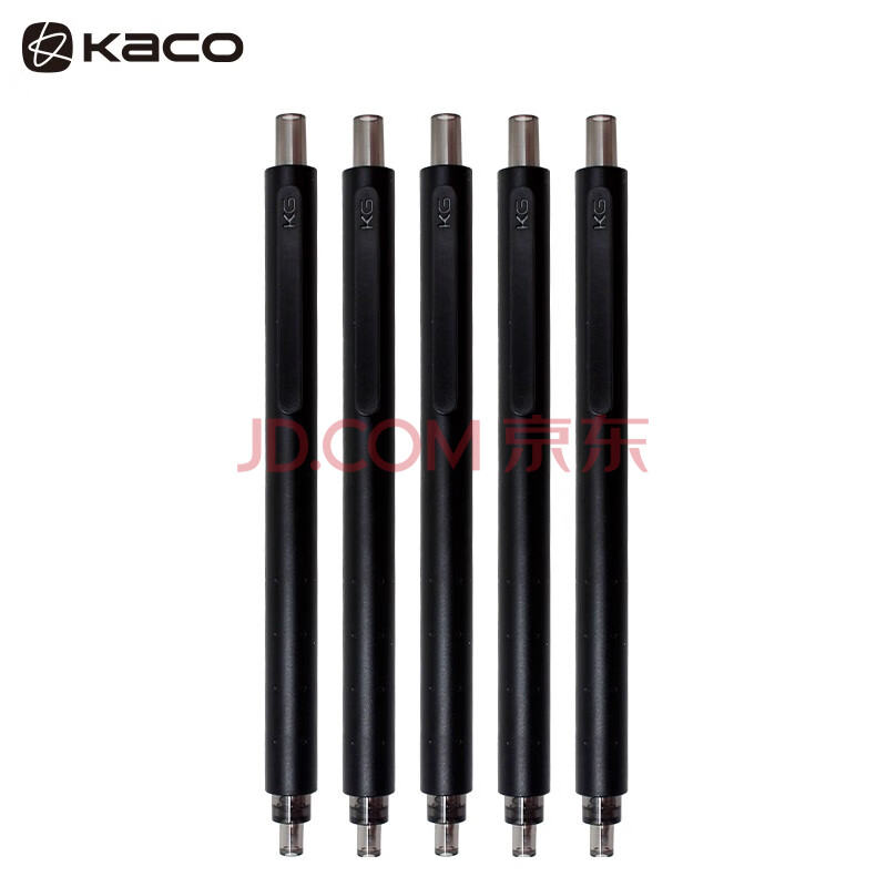 商品相册:KACO菁点中性笔0.5mm子弹头黑色按动笔低重心签字笔考试刷题水笔黑杆5支/盒K1028第