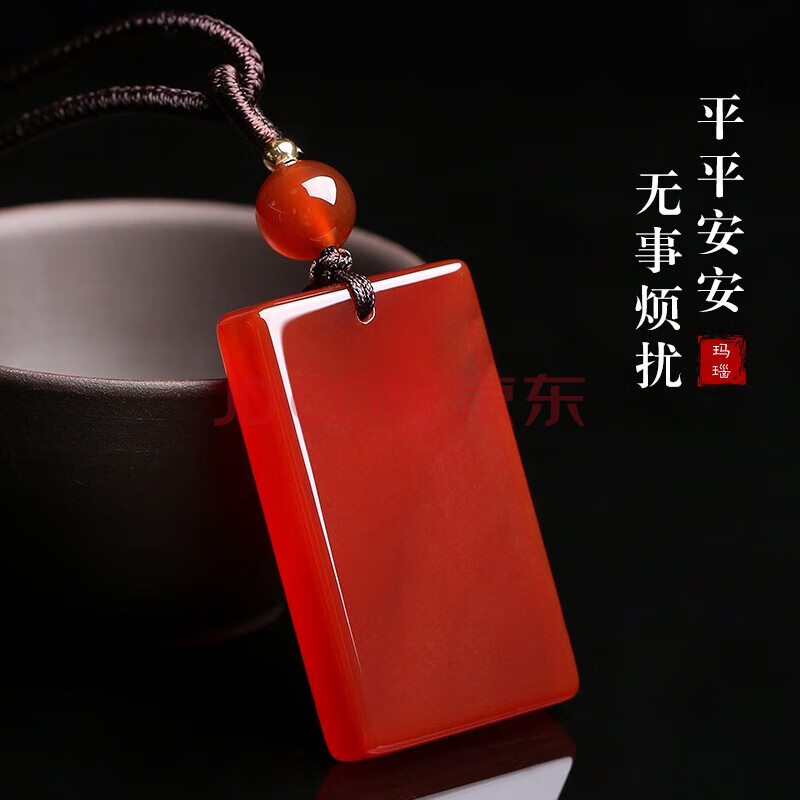 商品相册:石传百世红玛瑙吊坠护身符男女款平安无事牌情侣项链本命年生日礼物第