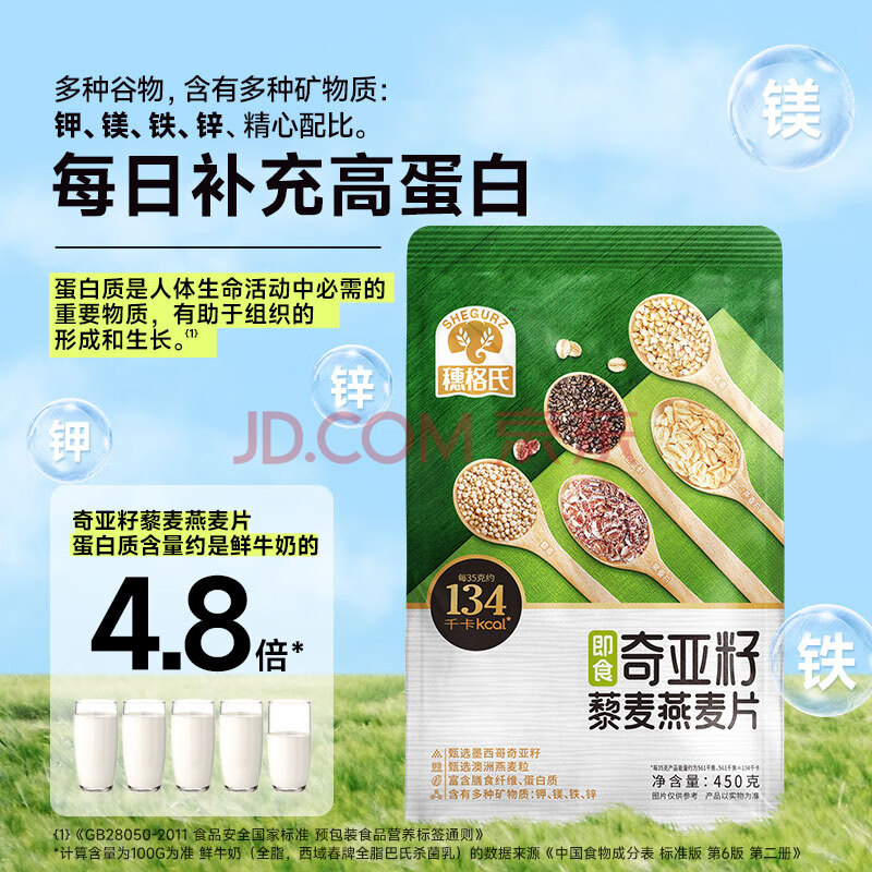 商品相册:穗格氏奇亚籽藜麦燕麦片450g 混合谷物即食麦片原味无糖精钠营养早餐第