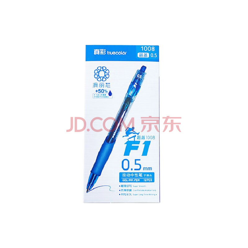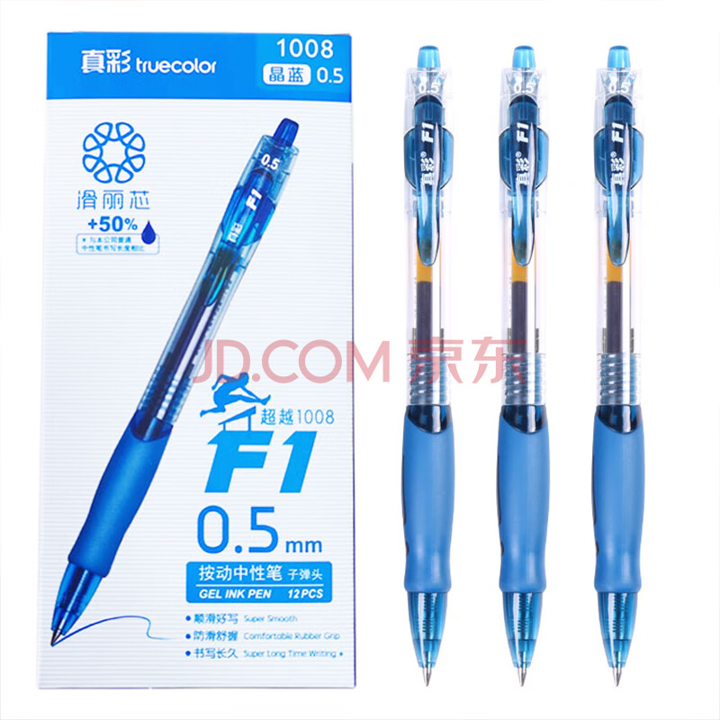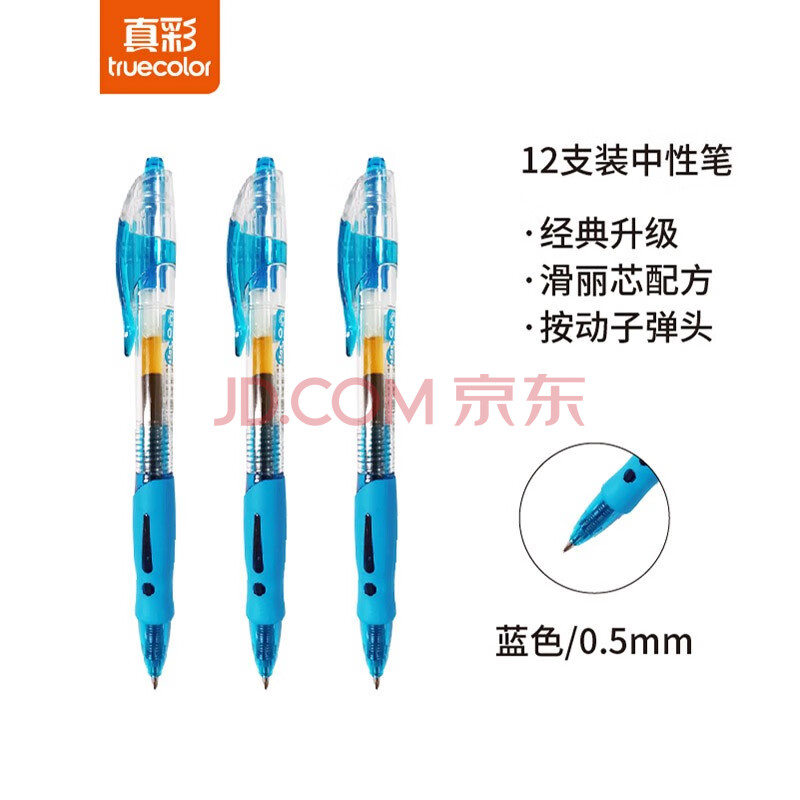 商品相册:真彩(TRUECOLOR)1008滑丽芯按动中性笔0.5mm晶蓝色子弹头商务办公签字笔水笔学生考试文具用品会议记录笔 12支/盒第