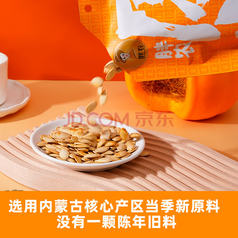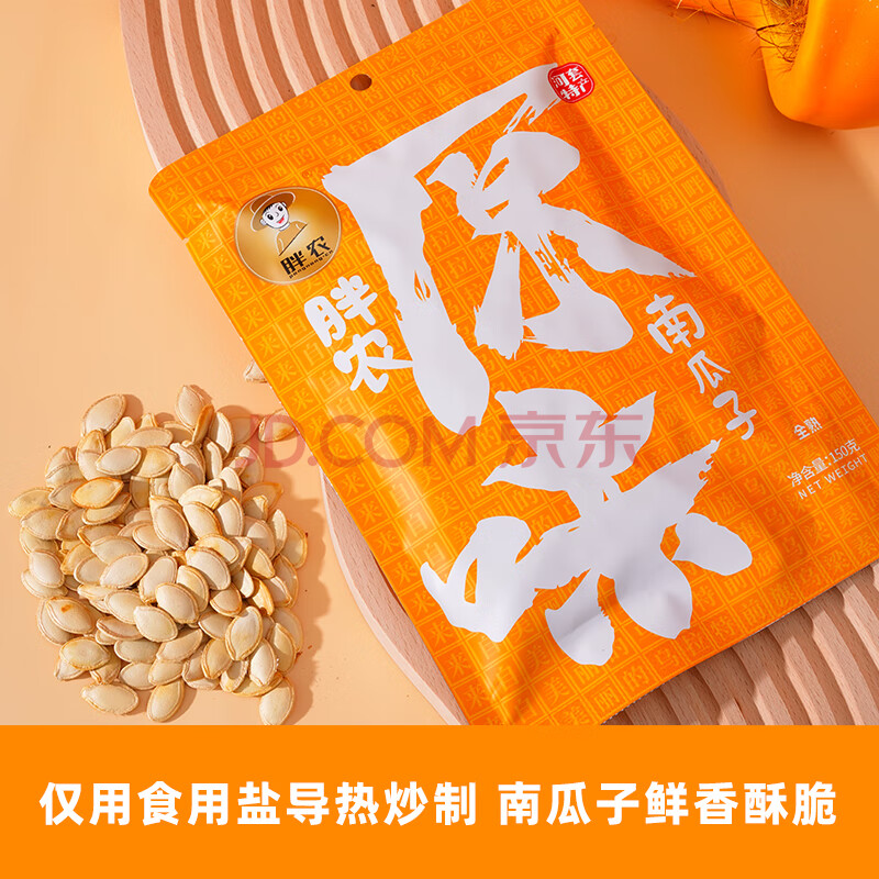 商品相册:胖农休闲零食 坚果炒货 原味熟南瓜子内蒙古大颗白瓜子新鲜货150g/袋第