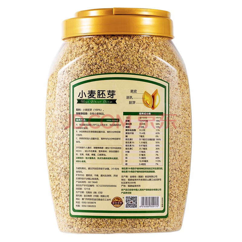 商品相册:金日禾野小麦胚芽900g 早餐谷物 即食燕麦片 无添加蔗糖 高纤代餐硒叶酸第