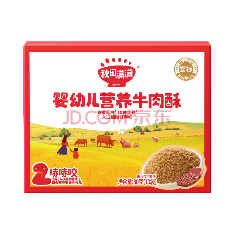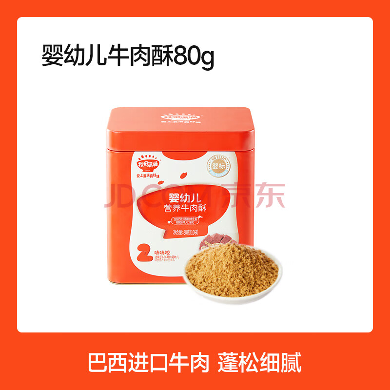 商品相册:秋田满满 婴幼儿牛肉酥80g 零食肉松拌饭料_享6个月以上婴儿宝宝辅食食谱第1张/共7