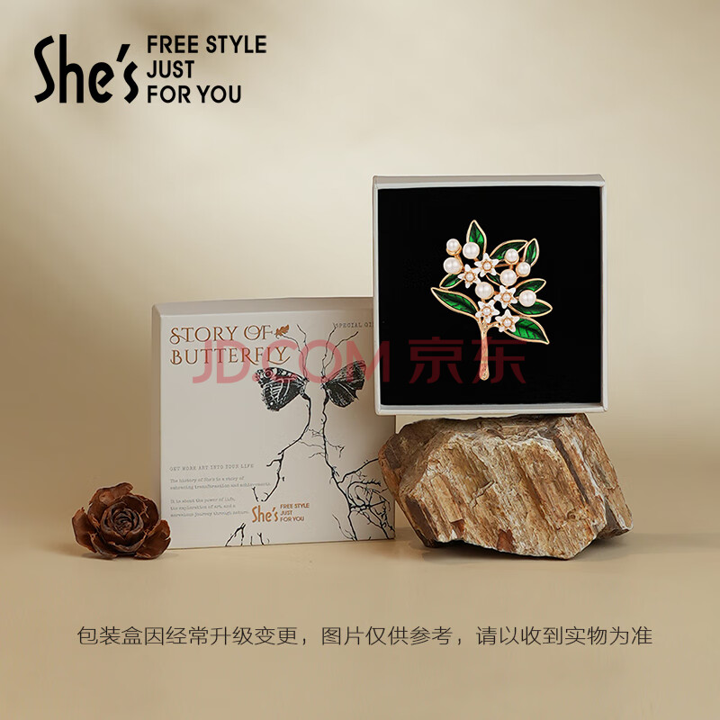 商品相册:She's茜子撞色滴油栀子花高档女士胸针轻奢胸花生日礼物送女友第