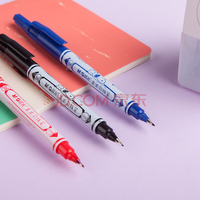 商品相册:晨光小双头记号笔SPM21302海洋风史努比勾线笔油性笔双头笔绘图描边图画黑色 12支装第
