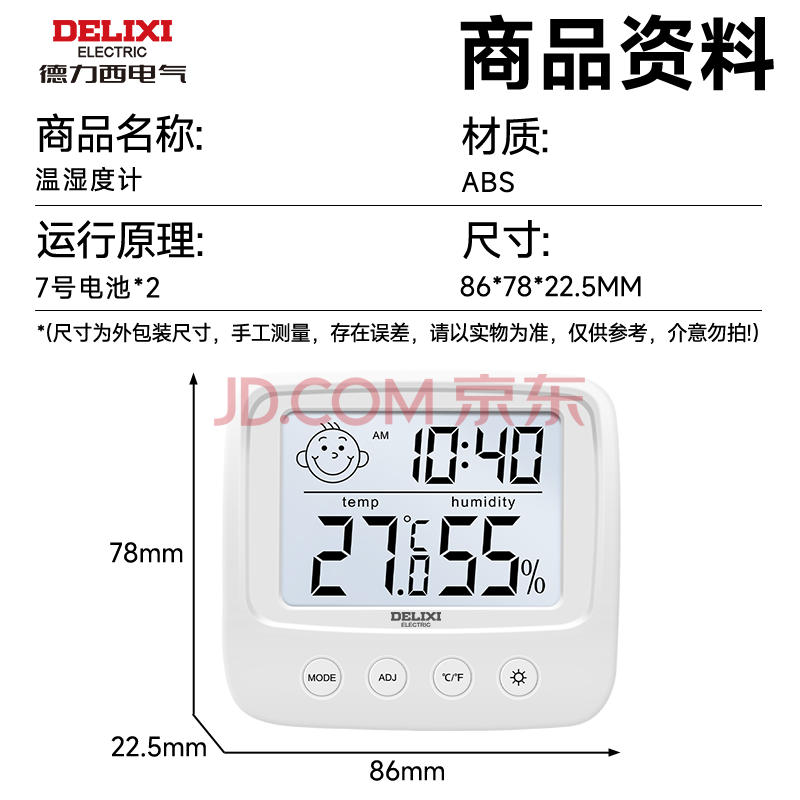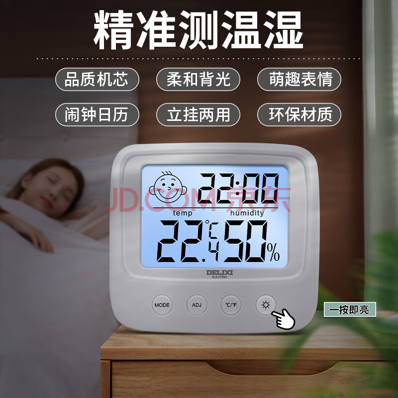 商品相册:德力西电气(DELIXI ELECTRIC)家用室内温度计带笑脸背光婴儿房电子数显温湿度计温度表DM-1002第