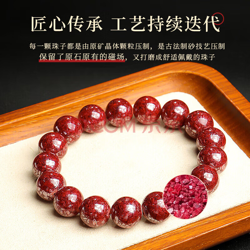 商品相册:辰石朱砂手串透光晶体砂男女本命年手链 12mm第
