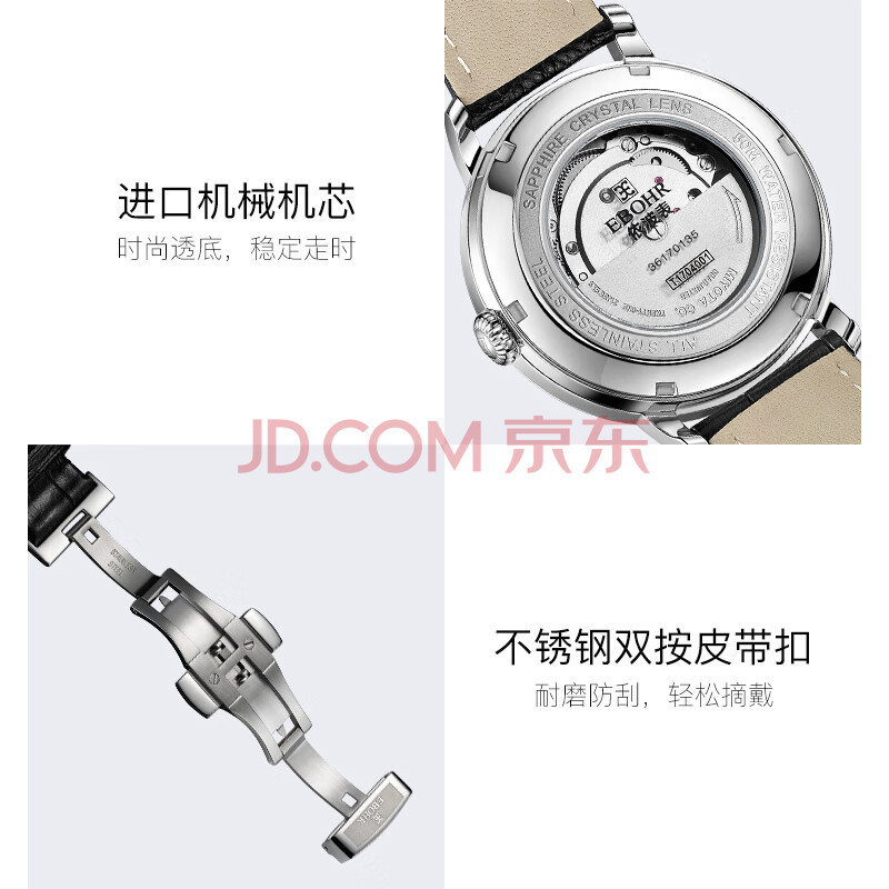 商品相册:依波(EBOHR)手表女大师系列休闲生日节日礼物白面皮带女士机械表36170142第