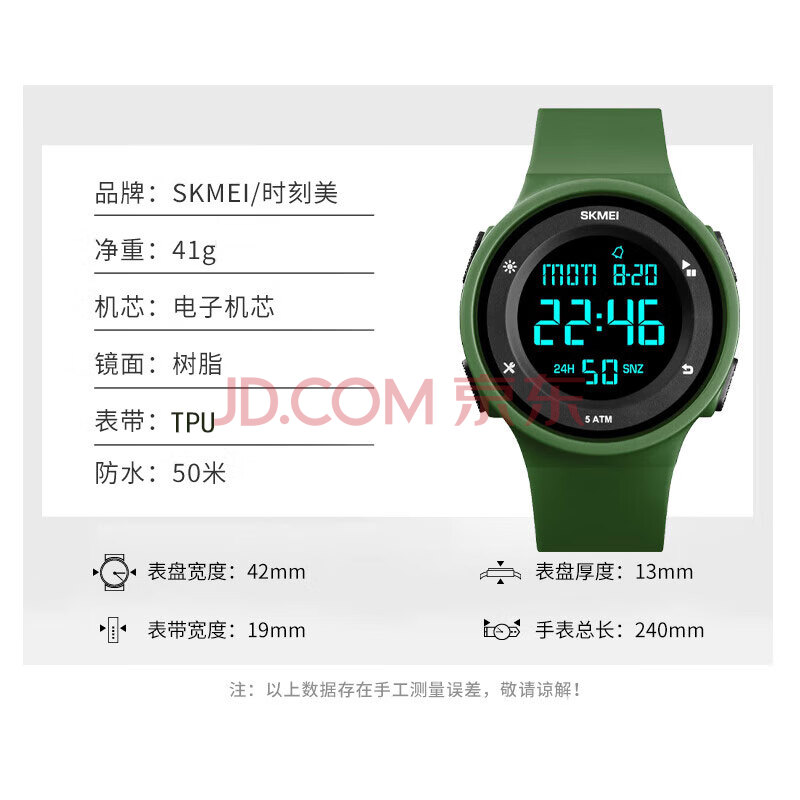 商品相册:时刻美(skmei)运动电子表防水青少年初中高中学生儿童手表看时间闹钟男生1445绿第