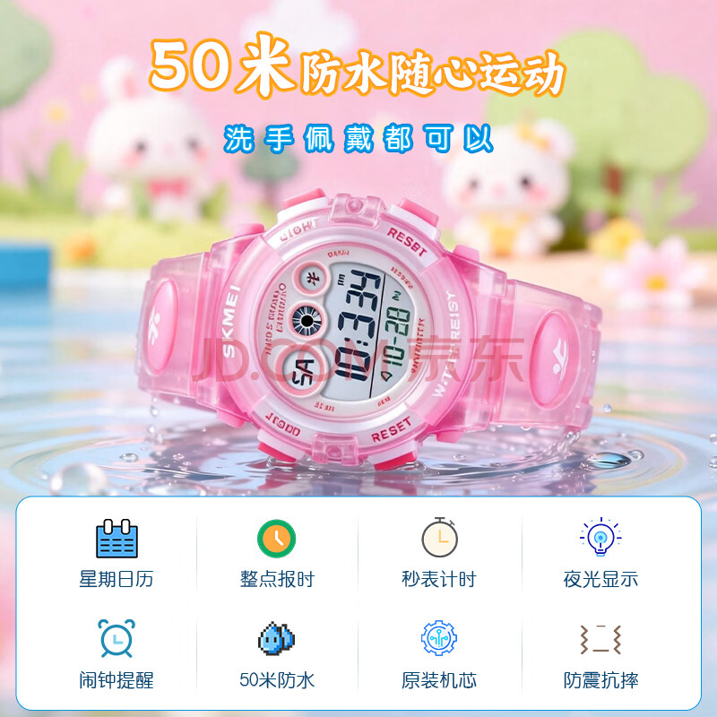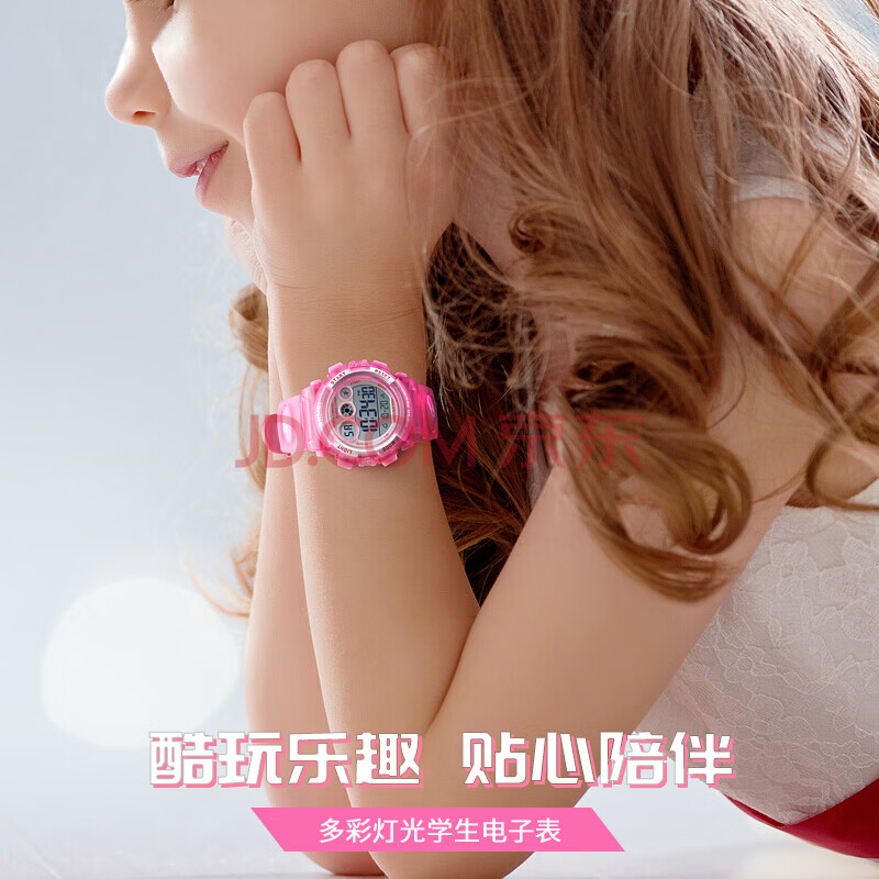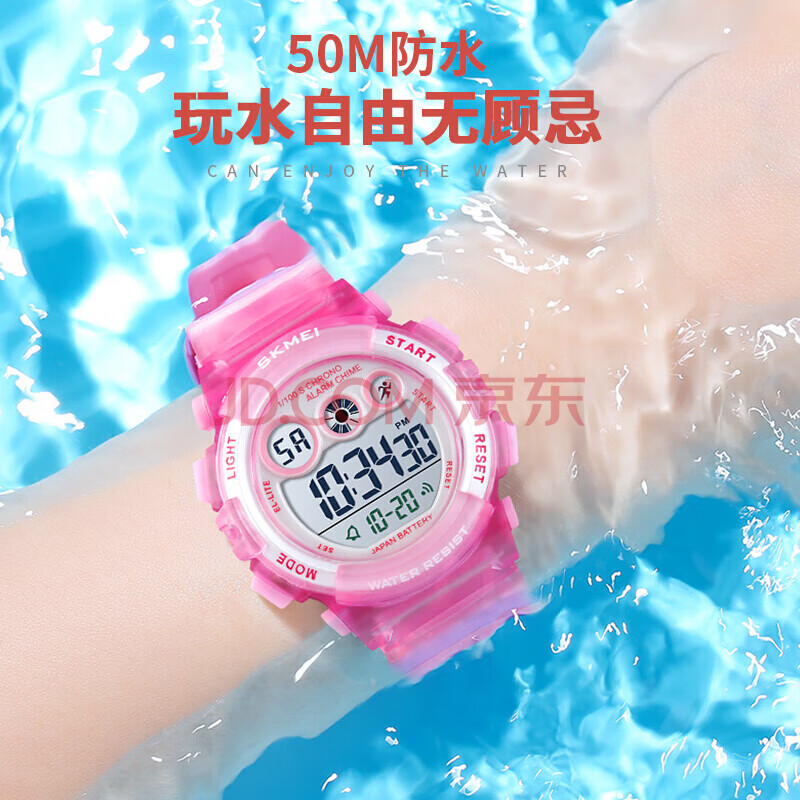 商品相册:时刻美(skmei)儿童手表只看时间6-12岁闹钟防水学生运动电子表生日礼物女1451第
