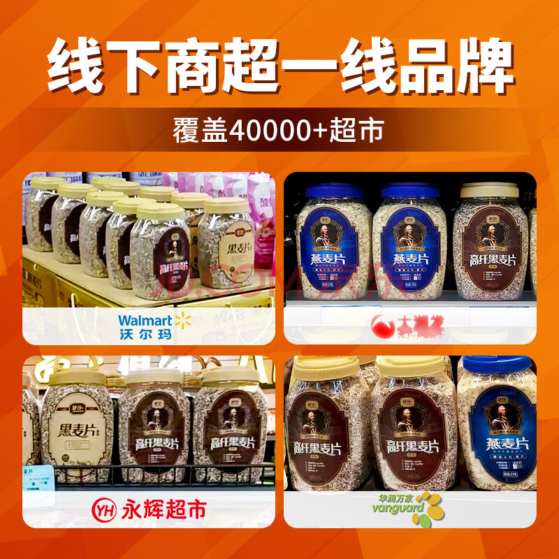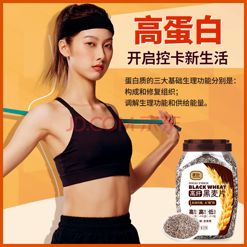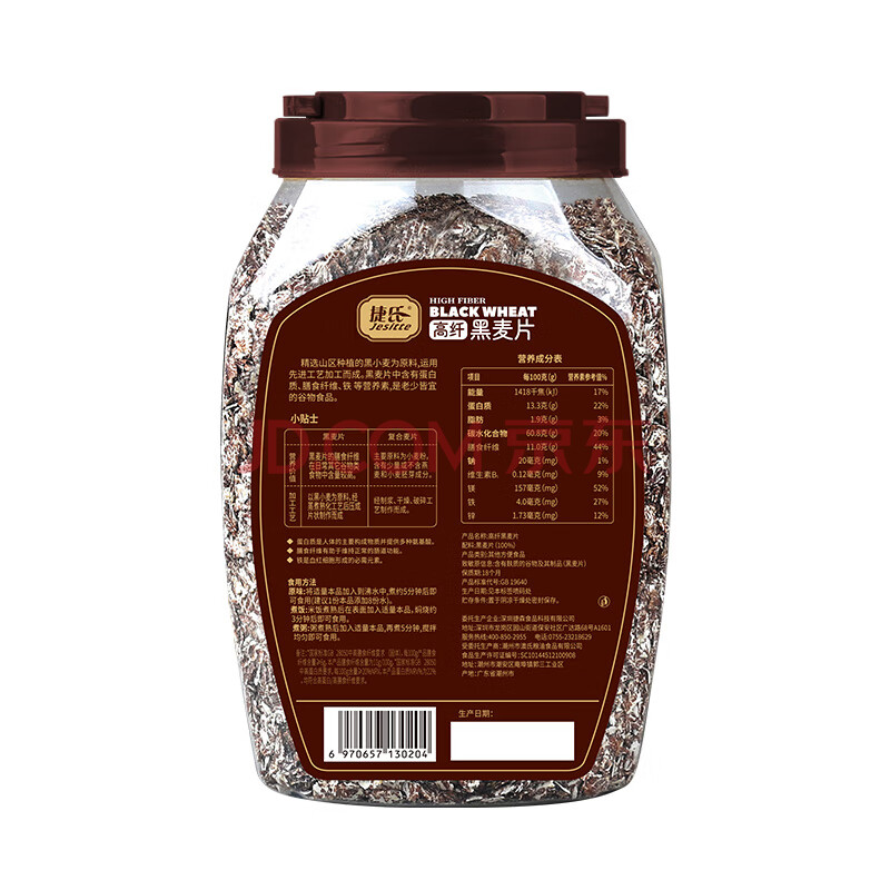 商品相册:捷氏纯黑麦片1000g无蔗糖低脂肪高膳食纤维粗粮早餐健身轻食饱腹代餐第