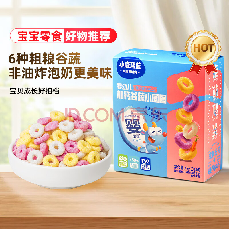 商品相册:小鹿蓝蓝非油炸谷物圈 婴幼儿宝宝零食儿童营养早餐冲泡即食48g 8月以上第