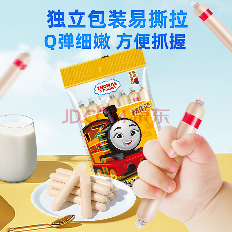 商品相册:小火车(THOMAS & FRIENDS)深海鳕鱼肠 托马斯韩国进口0添加宝宝零食儿童鱼肉肠 奶酪味105g第