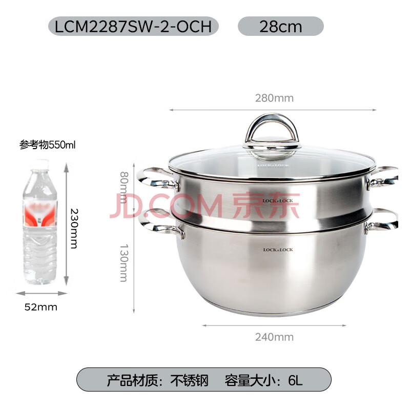 商品相册:乐扣乐扣(LOCK&LOCK)不锈钢蒸锅 家用大容量蒸锅28CM二层蒸锅汤锅套装组合电磁炉锅具第