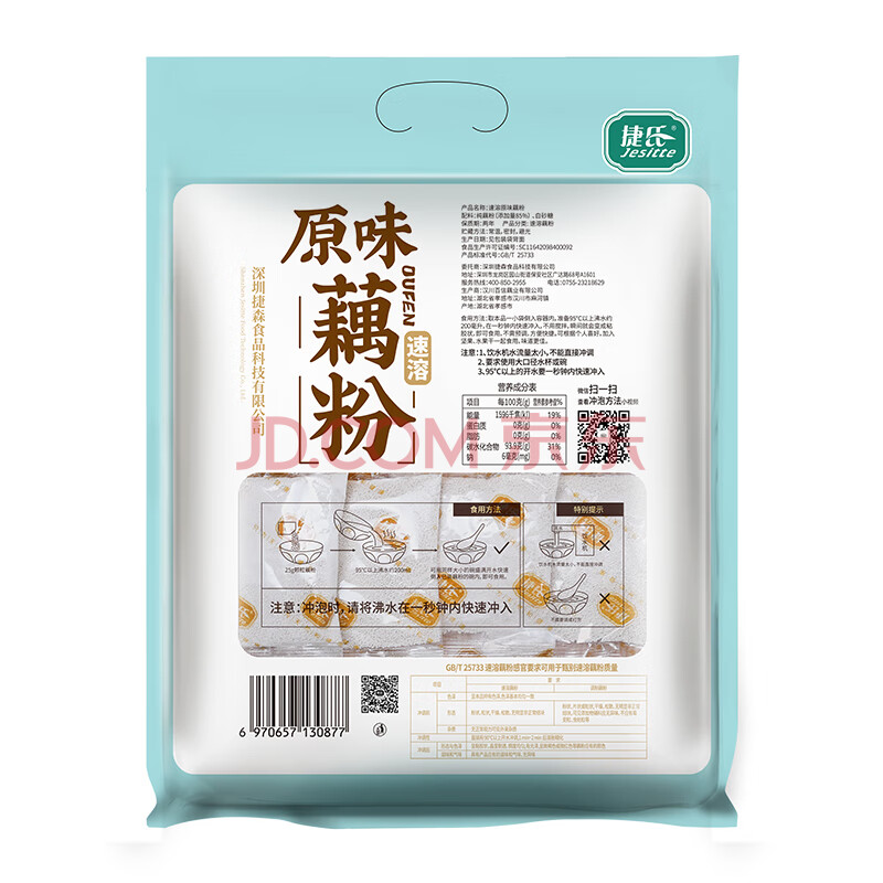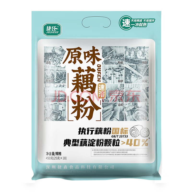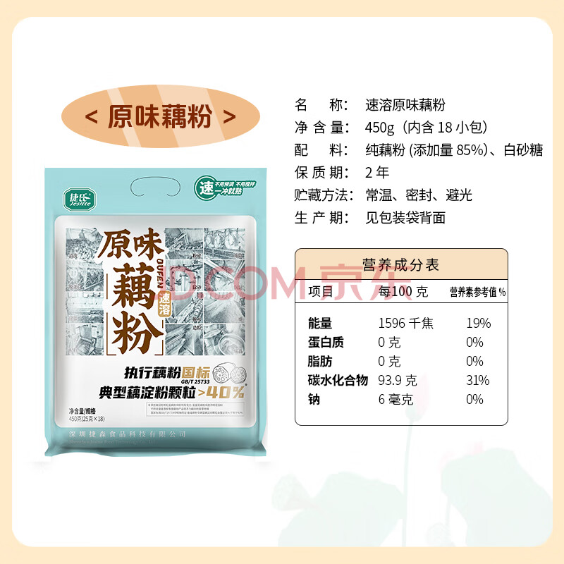 商品相册:捷氏原味藕粉450g 汉川特产古法莲藕粉 速溶饱腹早餐营养代餐冲饮食品第