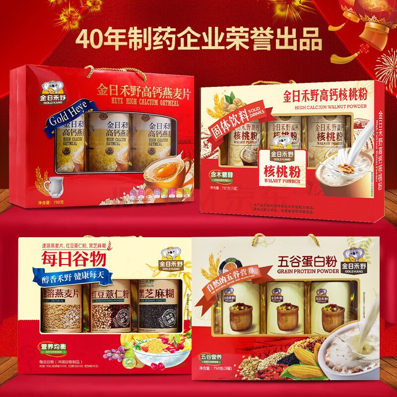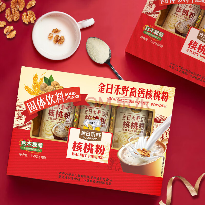 商品相册:金日禾野高钙核桃粉礼盒880g中老年人营养品送礼长辈麦片早餐年货春节礼品第