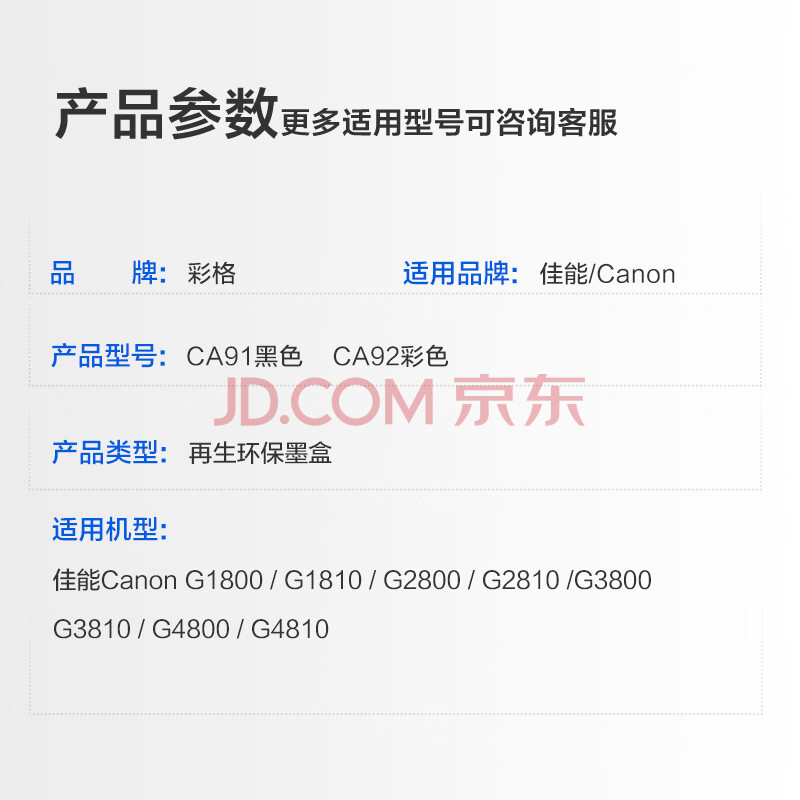 商品相册:彩格适用CA91 CA92打印头适用佳能G1800 G2800 G3800 G4800 G1810 G2810 3810 G4810打印机喷头墨盒canon黑彩第