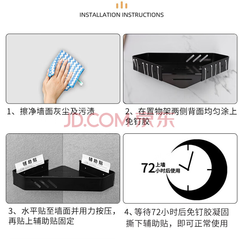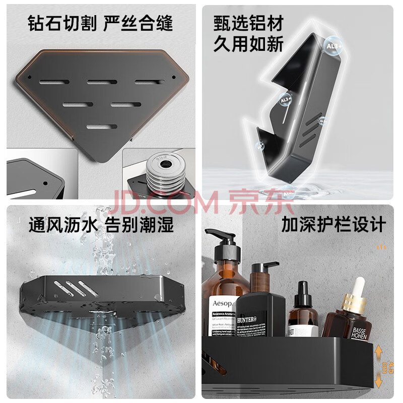 商品相册:百字卫生间置物架加厚太空铝免打孔三角架浴室厕所转角置物架第