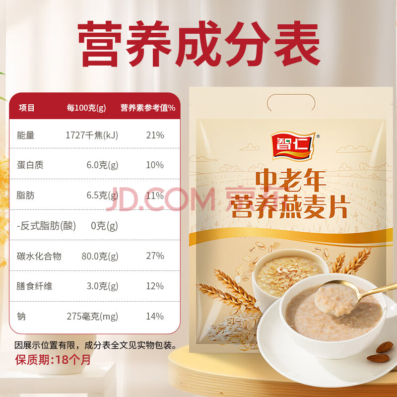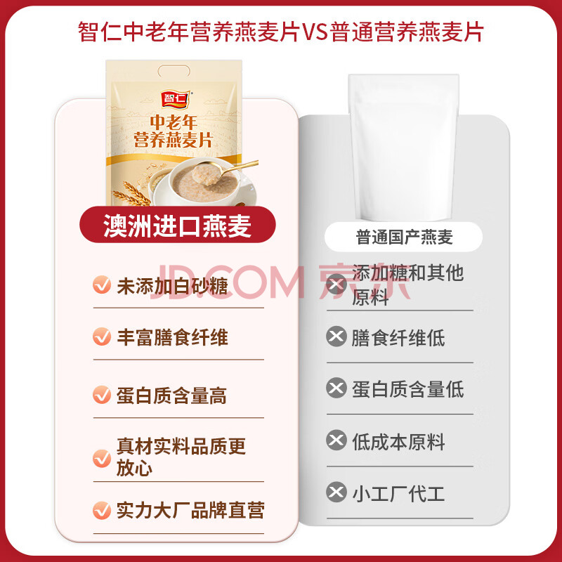 商品相册:智仁 中老年营养燕麦片 独立小袋包装 800g 纯香粗粮 谷物代餐麦片第