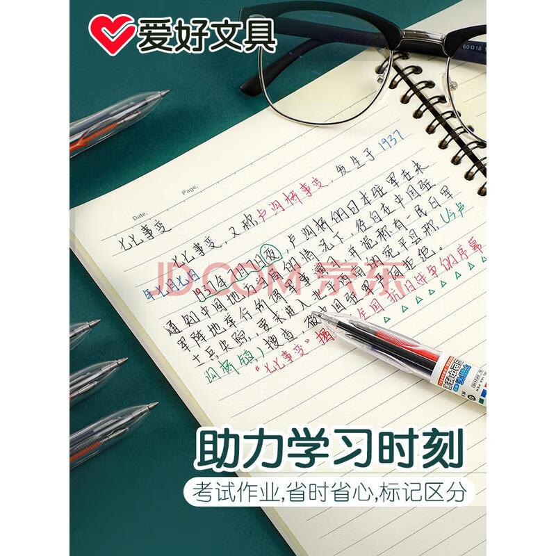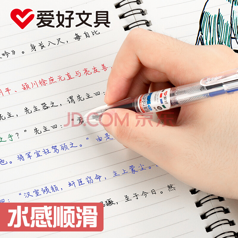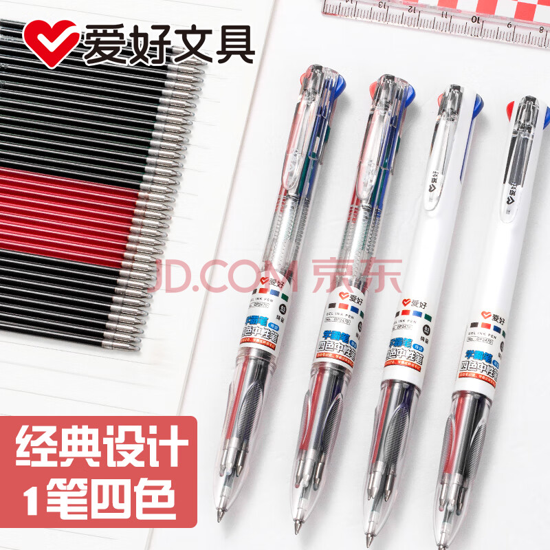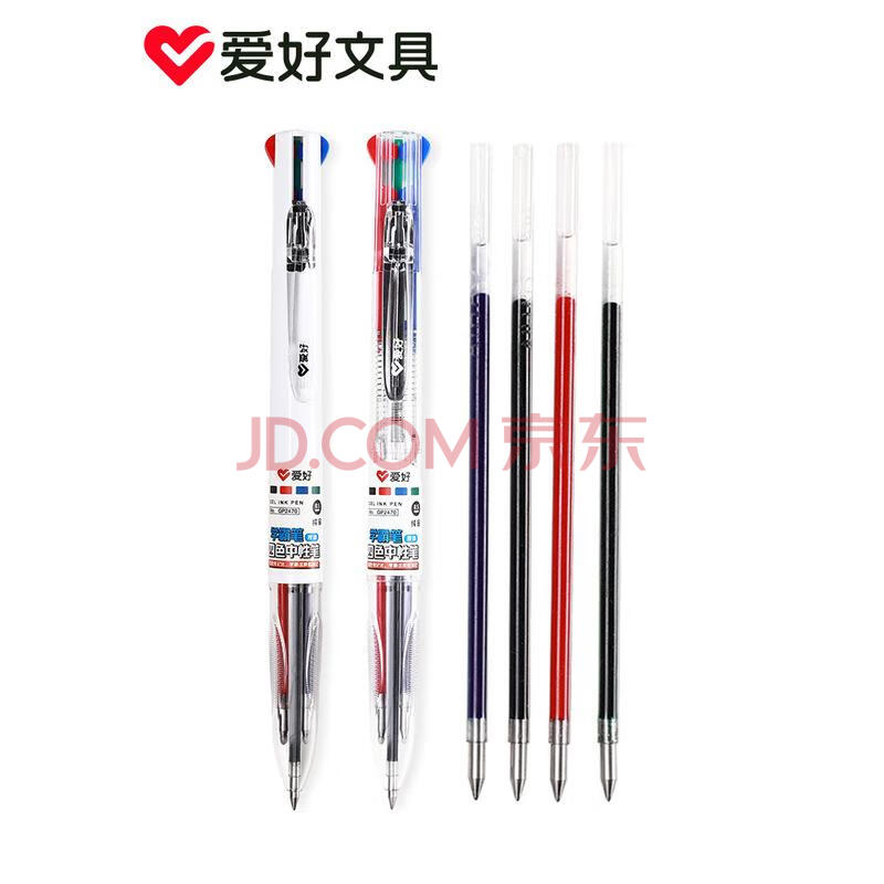 商品相册:爱好(AIHAO)【开学必备】四色中性笔学生老师用手账做笔记专用一笔多芯多功能水性按动笔 透明2支gp247第