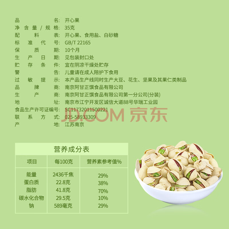 商品相册:阿甘正馔 开心果35g*5袋 休闲零食每日坚果炒货干果分享装下午茶第