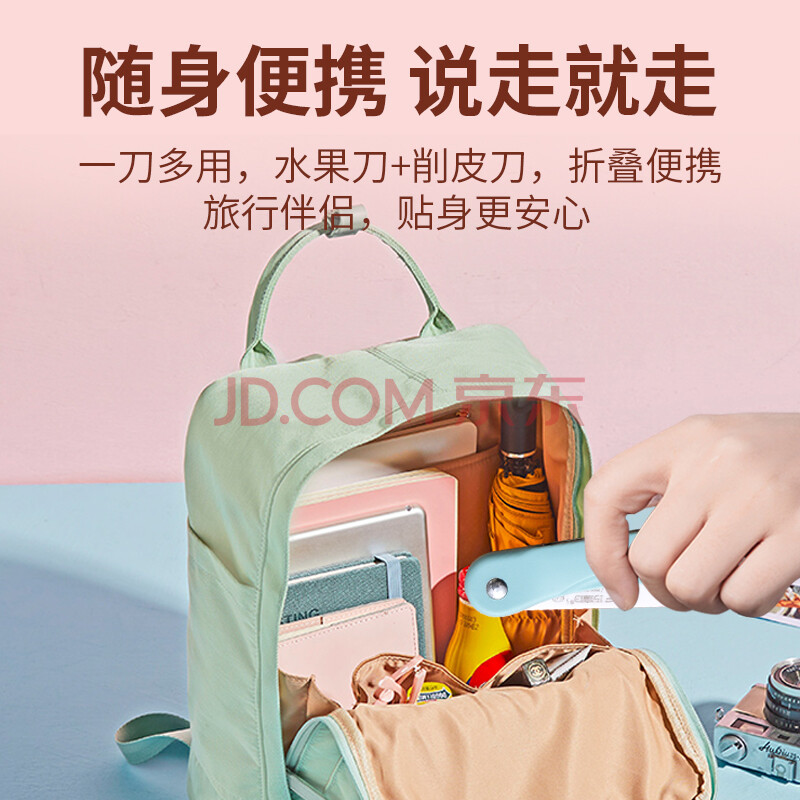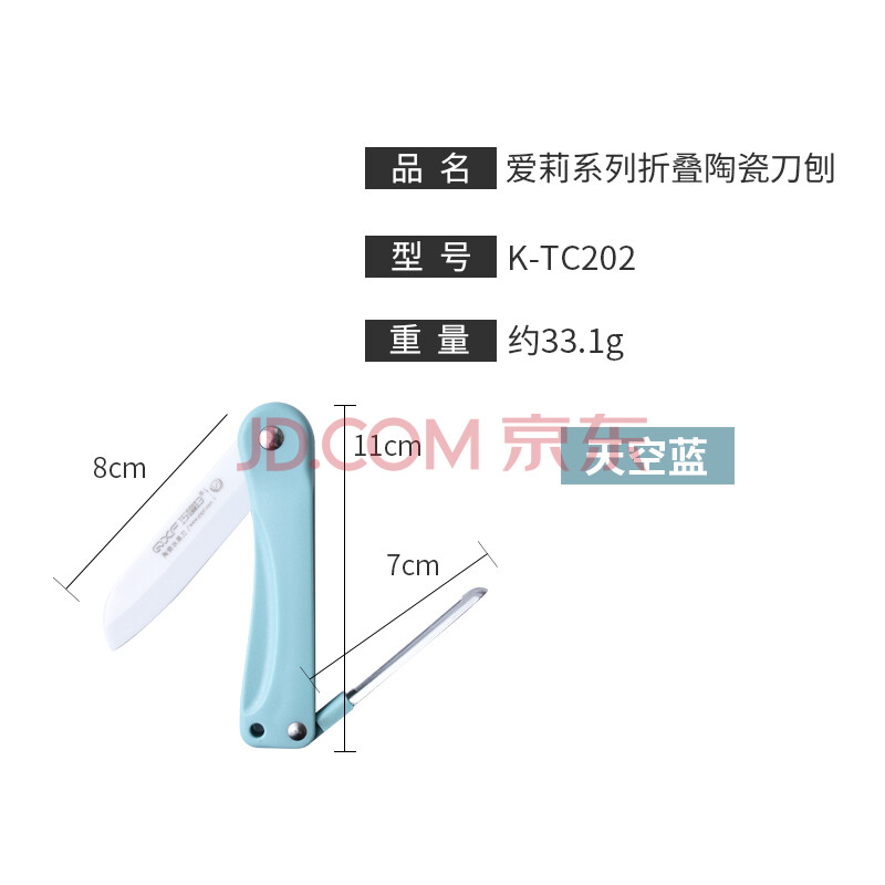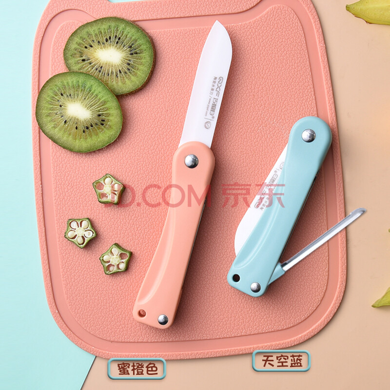商品相册:巧媳妇(SMARTWIFE)家用陶瓷折叠水果刀便携瓜果刀随身削皮小刀厨房刀具去皮刀 蓝色第1张/共9