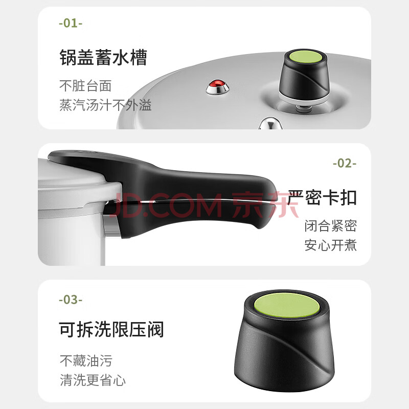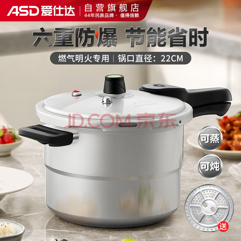 商品相册:爱仕达 ASD 高压锅T型6.1L六保险铝合金压力锅明火专用带蒸篦YL22T2WG第